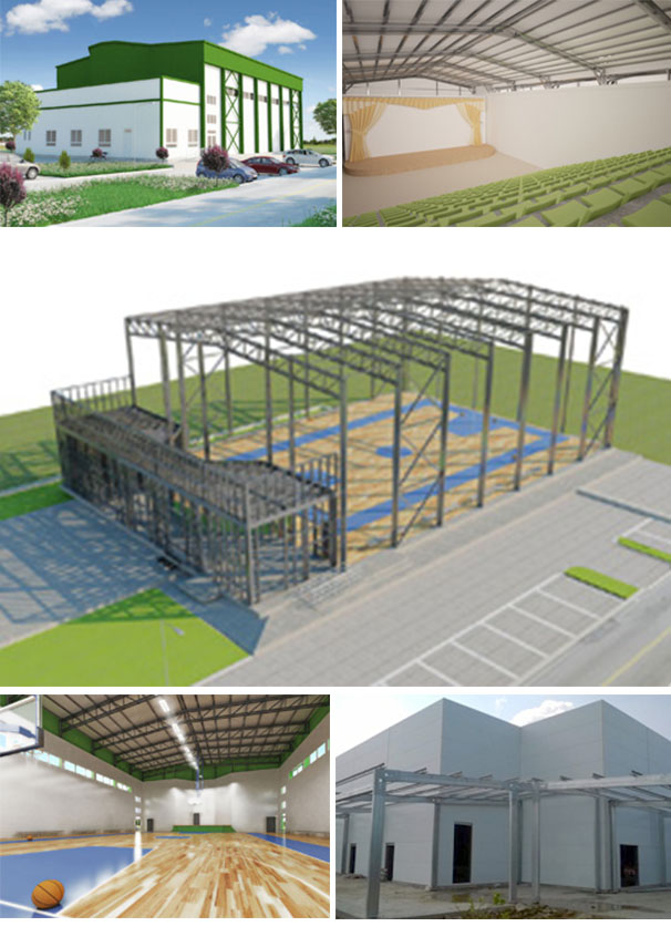 With APEC's smart steel structures it si possible to cover long spans even under harsh conditions. This way, we can construct a sports center hosting a basketball and volleyball field in no time. Our portable structures due to their bolted connections can be transferred to other locations if the initial area is being planned for other uses in a few years.