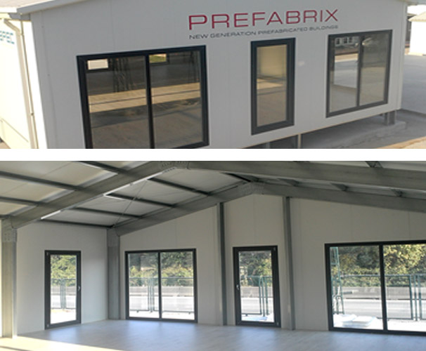 PREFABRIX, easily installed and portable and remountable without loss, is a practical system with custom design bolted connection members and interlocking light panel system practical system With its superior connection technique and strong frame system, it is convenient for multi-purpose uses. Sandwich panels are used for the side walls and interior walls and extra insulation, joint sealant, plaster and paint works are not needed. Energy efficient environments are created by adjusting the insulation type and quantity. PREFABRIX possesses a modern architectural line demonstrating its steel members and sloped roof. Designed for meeting the requirements of commercial and public institutions as well as individuals, fast production, earthquake-resistant, durable, maintenance free for long yars, easily installed, environment friendly, portable, and economical PREFABRIX structures provides modern living environments.
